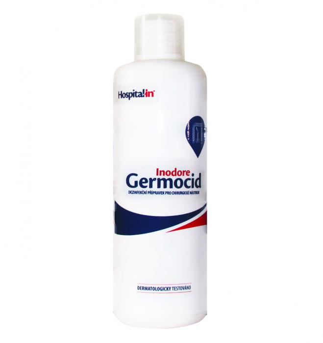 Germocid inidore je dezinfekční a čisticí roztok, určený k okamžitému použití na chirurgické nástroje a některé lékařské přístroje. Zaručuje celkovou a dlouhodobou dezinfekci. Přípravek bez zjevných známek zápachu.