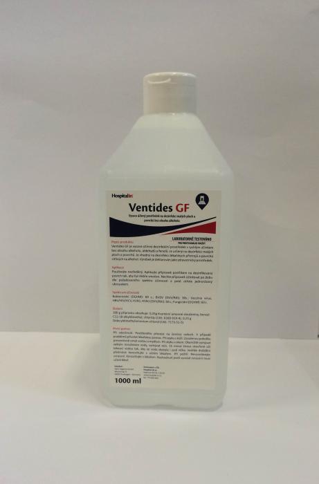 Ventides GF je vysoce účinný dezinfekční prostředek s rychlým účinkem bez obsahu alkoholu, aldehydů a fenolů. Je určený na dezinfekci malých ploch a povrchů postřikem. Je vhodný na dezinfekci lékařských přístrojů a povrchů citlivých na alkohol (např. hlava ultrazvuku). Výrobek je deklarován jako zdravotnický prostředek.
